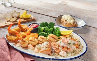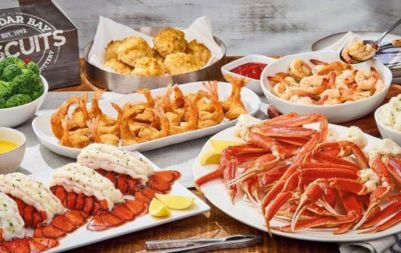Red Lobster features a variety of signature seafood dishes off their extensive menu! One of the well-known entrees is the Lobster Lover’s Dream (starting at $39.99), which includes roasted rock lobster tails and butter-poached Maine lobster tails with lobster and shrimp linguini. If you want a little of everything, there is the Admiral’s Feast (approx. $24.99) with fried shrimp, scallops, clam strips, and wild-caught flounder with your choice of sides!